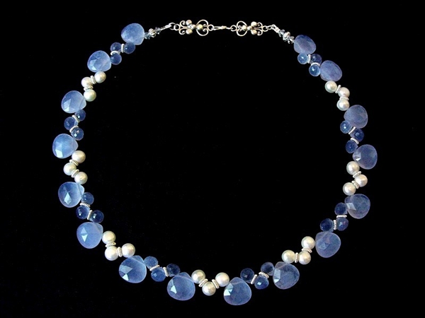 Fresh Water Pearls, Blue Chalcedony and 925 Silver Components